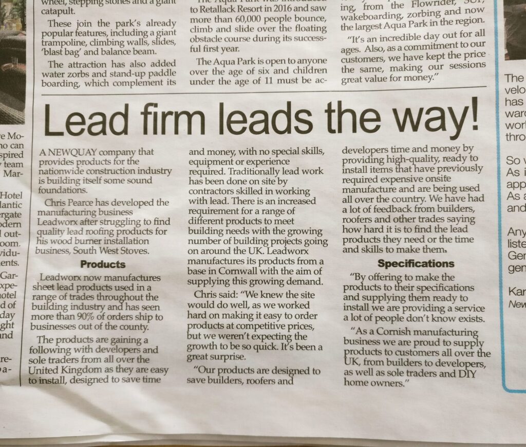 A great write up in the paper for Leadworx thanks to the Newquay Voice.