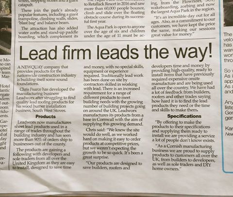 A great write up in the paper for Leadworx thanks to the Newquay Voice.